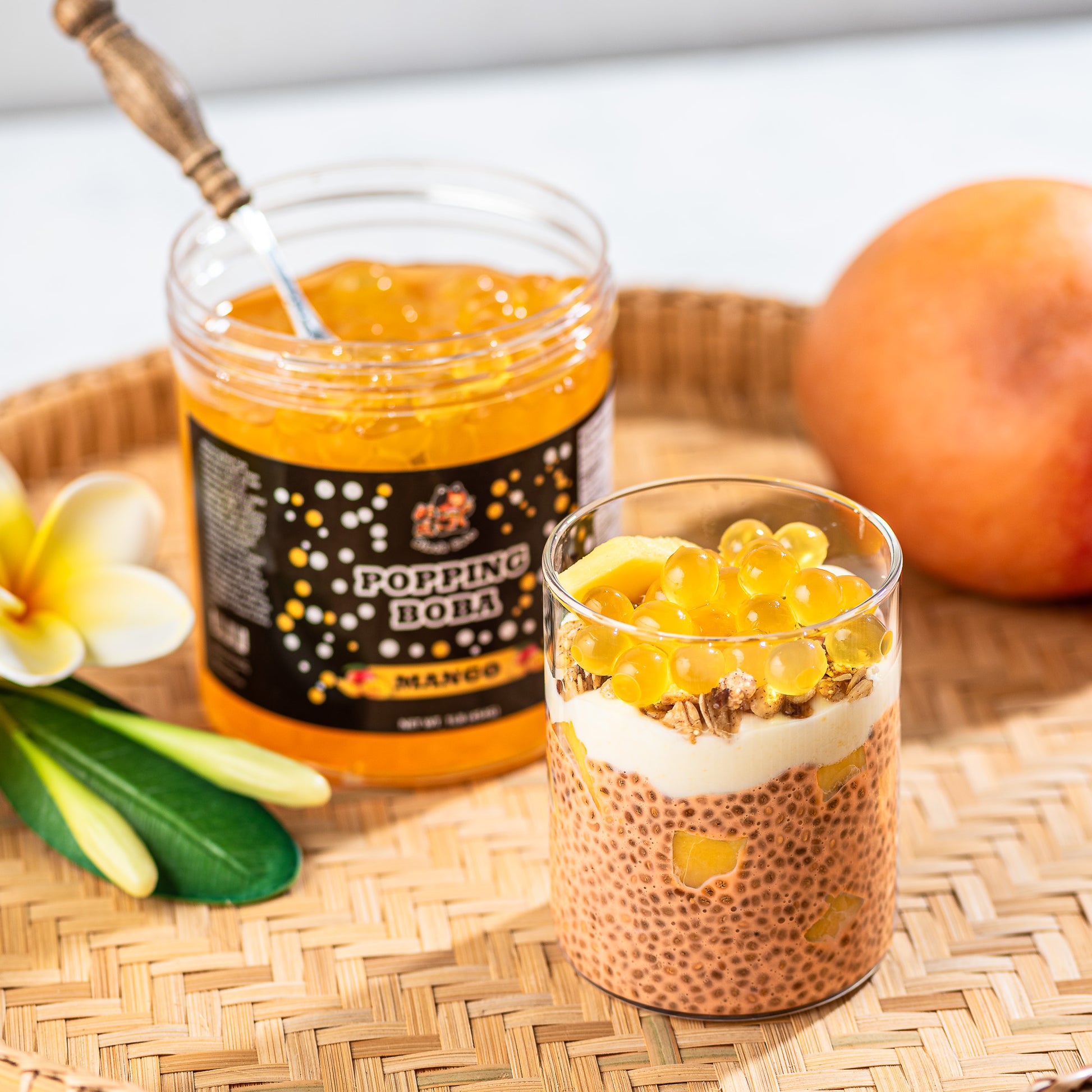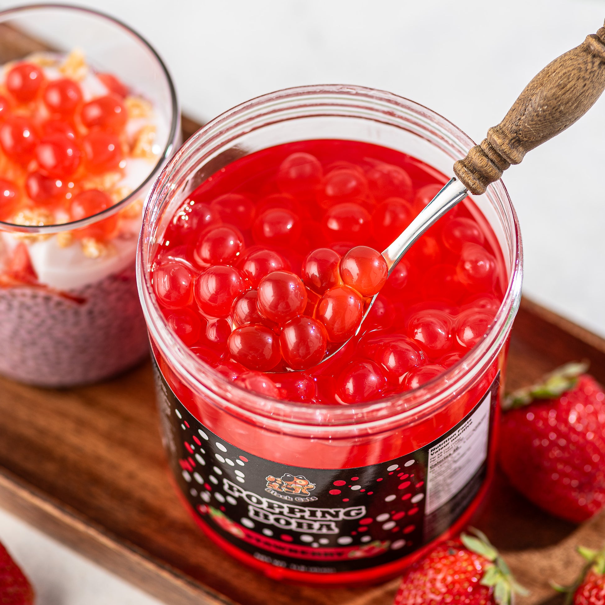 Indulge in a flavor explosion with a burst of luscious fruit flavors. From juicy mango to tangy dragon fruit and more, each translucent popping pearl is filled with a delightful fruity liquid that explodes in your mouth, elevating your snacking experience to a whole new level of taste sensation. Each package comes with 1LB (454G) of popping boba pearls.